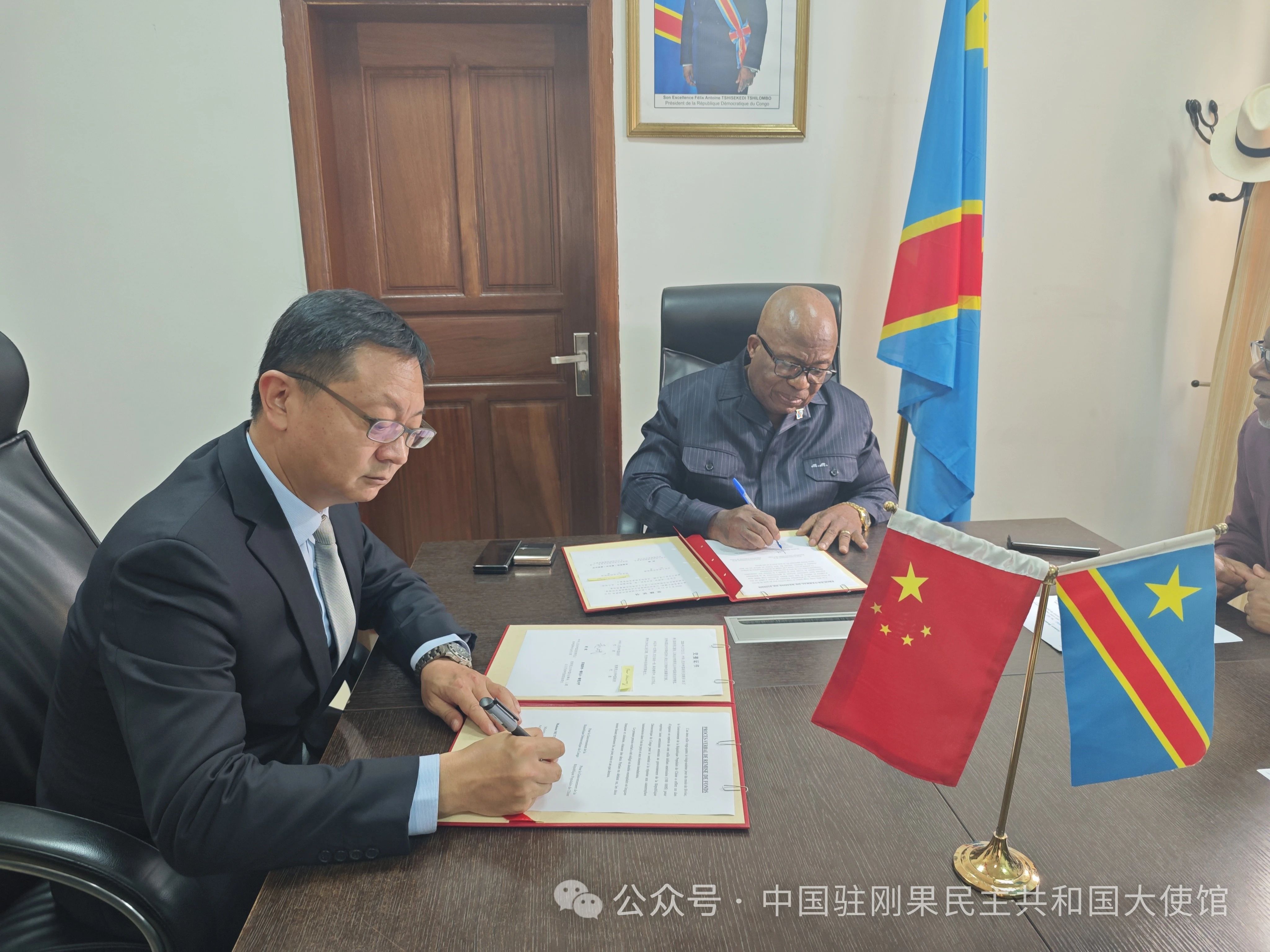 赵斌大使同刚果(金)社会事务部长签署援刚紧急人道主义现汇交接证书
